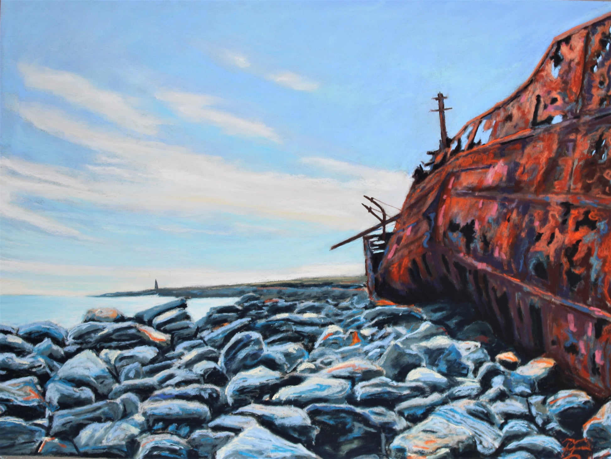 I really enjoyed painting the rust - it was perfect to paint in pastel.