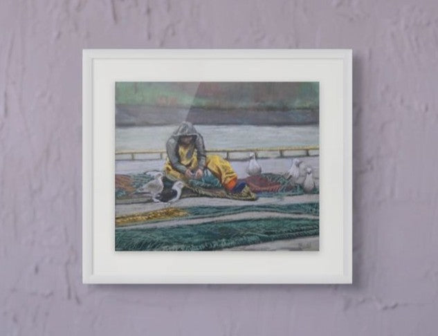 From a series of Paintings of fishermen mending nets at Union Hall pier - but being quietly accompanied by the local gulls.